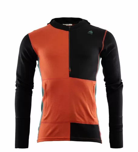 Aclima WarmWool Hood Sweater Net, M Jet Black / Red Clay / North Atlantic