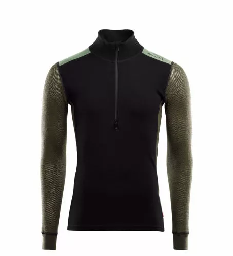 Aclima Woolnet Hybrid Mock Neck W/zip Man Jet Black/Olive Night/Dill