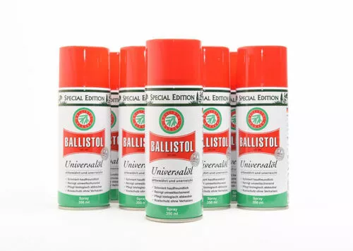 Ballistol 350 ml. Special EditionBALLISTOL OLJE 350 ML SPRAYBallistol er en alkalisk olje som er syernøytraliserende. Den har mange verdifulle egenskaper som: rustbeskytter, høy inntrengning, desinfisering, lavere overflatespenning og glideeffekt for bevegelige deler. Ballistol trenger inn i de minste åpninger – herder ikke- eldres ikke! Ingen annen olje har så mange bruksområder som denne. JAKT:Innholdet i flasken har en desinfiserende effekt og kan av den grunn bruker i åpne sår.Dette er en perfekt olje for bruk på hunders poter, siden den er beskyttende. FISKEUTSTYR:Ballistol konserverer kroker, svivler, hemper, agnnåler, og stålfortommer. Den smører og beskytter sneller og teleskopstenger.Denne er ypperlig for seletøy, sko og møbler. HUSHOLDNING:Ballistol smører dørlåser, skrikende hengsler, og gjenstridige vinduer. Smører og beskytter alt fra symaskiner til sykler.Kan også brukes på møbler av tre. De kan få tilbake sin opprinnelige glans. KJØRETØY:Ballistol beskytter krom, felger og låser. Ballistol hindrer ising i låsene og smører teleskopantenner. Sprayer du fronten av bilen med Ballistol, vil du med enkelthet fjerne døde insekter.HAGEN: Bruk Ballistol til beskyttelse av hageutstyr, gressklippere, sakser, trillebåre, etc. Ballistol gjør redskaper rene og skinnende. MOT BLADLUS:Lag en oppløsning av 3 prosent Ballistol og 97 prosent vann i en sprayflaske og spray direkte på plantene. Bladlusene dør uten at plantene blir skadet. INDUSTRI OG HÅNDTVERK:Ballistol kan brukes til alle slags maskiner og verktøy. Løser opp rustne skruer. VÅPENPLEIE: Ballistol rengjør og beskytter alle type våpen. Nøytraliserer surt slagg og kruttslam, samt smører glideflater. Ideell også til skjefteolje. LÆRKONSERVERING:Ballistol får sprøtt og tørt lær mykt og elastisk igjen. Den beskytter mot dårlig vær og smuss. Ballistol gir læret en silkeaktig glans.