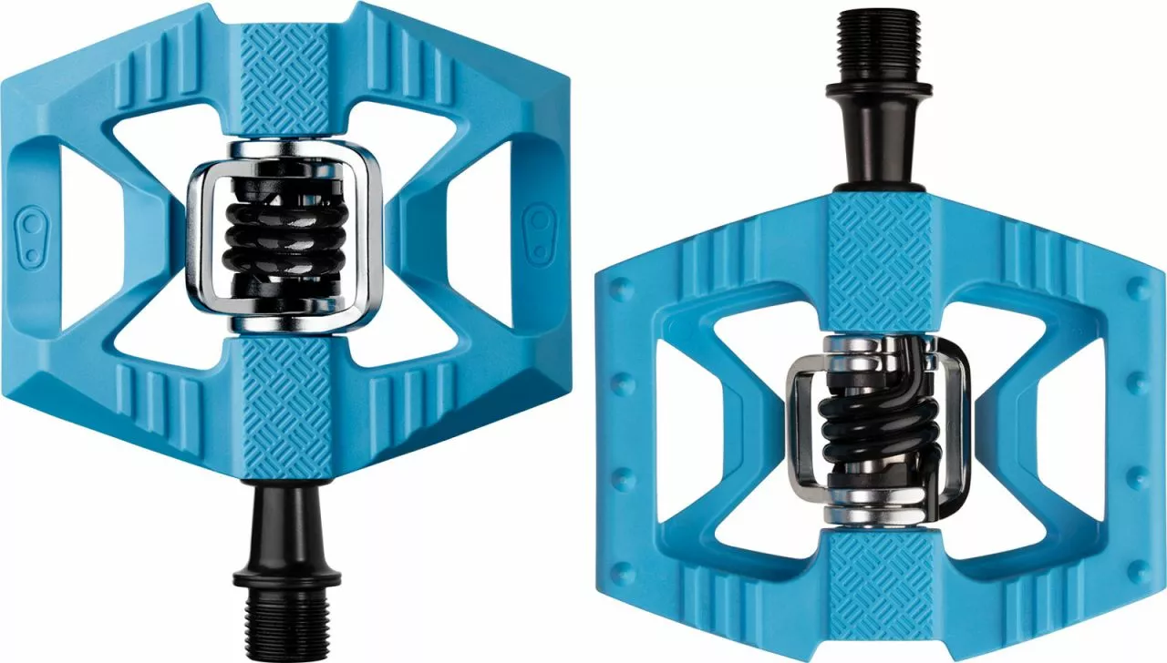 Decida si quiere utilizar el pedal como pedal plano o como pedal de enganche. El pedal híbrido Double Shot 1 de Crankbrothers es plano por un lado y está equipado con un probado mecanismo de clic por el otro, que también se caracteriza por sus excelentes propiedades de autolimpieza.