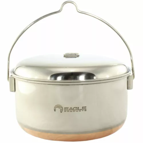 Eagle Kjele for tur 3,2 ltr.Kjele, med låsbar opphengsbøyle, for bål, gass, primus, etc.PS! Vår populære 1,5L bålkjele får plass oppi denne gryta – plassbesparende!Vekt: 490 gVolum: 3,2 lDiameter: 21 cmMateriale: Rustfritt høyglanspolert edelstål m/kobber belegg i bunn