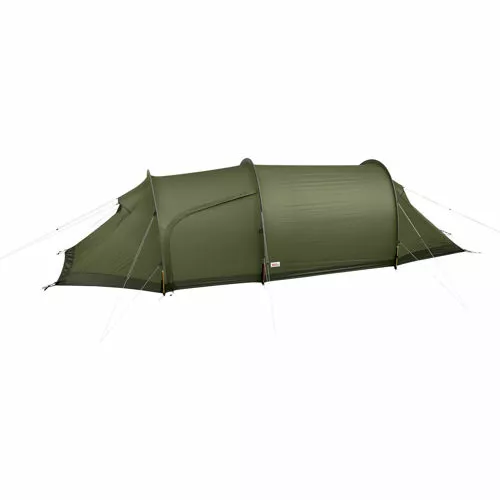 Fjällräven Abisko Endurance 2 Pine greenRomslig og stabilt helårs tunneltelt med full høyde i innerteltet og ekstra stort fortelt. Dette gjør teltlivet komfortabelt og gjør det lettere å tilbringe lange regnværsdager inne i teltet. Perfekt for dem som ønsker et telt med lav vekt, men som likevel er sterkt og pålitelig til helårsbruk under alle forhold unntatt de mest ekstreme. Forteltet har god plass til matlaging og oppbevaring av utstyr. Inngangen er på siden og gjør det enkelt å utnytte plassen godt. Det er en klessnor i forteltet og innerteltet, der det også er praktiske nettinglommer til små gjenstander. Innerteltet og ytterteltet slås opp samlet. Stangkanalene er fargekodet og store nok for doble teltstenger (tilbehør) under tøffe forhold. Store, godt plasserte ventiler gir førsteklasses luftsirkulasjon. Alle åpninger er dekket av finmasket netting som holder ute selv de aller minste, knapt synlige insektene. Når det er varmt, kan døren festes i halvåpen stilling – glidelåsen har en automatisk låsefunksjon som gjør at vinden ikke kan tvinge den til å “krype” – for ekstra luftsirkulasjon uten at regnet slipper inn i innerteltet. Festepunkter for utstyrsloft (tilbehør) i innerteltet. Ytterteltet er sydd i Fjällrävens nye tekniske TripleRip-nylon, og en innovativ konstruksjon som kombinerer to ulike materialvekter – 20 denier øverst og 40 denier nederst der slitasjen er mest intens – gir førsteklasses styrke til tross for den lave vekten. Som alle Fjällrävens telt er Abisko Endurance 2 produsert helt uten PVC-plast og giftige flammehemmere, og impregneringen er fluorkarbonfri.SpesifikasjonerOvertelt-materiale: 20D TripleRip Sil/Sil 3000 mm 100 % polyamideMateriale i nedre overtelt: 40D TripleRip Sil/Sil 3000 mm 100 % polyamideMateriale teltinnside: 15D Ripstop DWR 100 % polyamideFasthet åpen: 40D PU 6000 mm 100 % polyamideMyggnetting: 20D No-see-um mesh 100 % polyesterStangmateriale: DAC Featherlite NSLPlugger: DAC V-Pegs SmallStormline: 2 mm Dyneema (160 kg) reflekterendeEgenskaperIndre telt har lommer av netting: To store, To småAntall fortelt: 1Antall innganger: 1Antall stenger: 3Stangdiameter: 9 mmPakkestørrelse: 18 x 39 cmVekt: 2550 gMinimum vekt: 2100 gPersoner: 2Sesonger: 4 årstiderKonstruksjon: TunnelEgenskaper ved telt: Reflekterende stormliner
