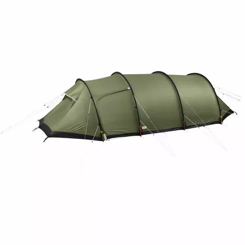 Fjällräven Keb Endurance 4 Pine GreenEkstra sterkt og sikkert tunneltelt til helårsbruk, optimalisert for tøffe forhold og krevende terreng. Full høyde i hele innerteltet og det store hovedforteltet gjør teltlivet behagelig, spesielt når dere ligger værfast. Perfekt for avansert vintervandring og teltturer over tregrensen, men fortsatt lett nok til å kunne bæres i vandreryggsekken. Alle materialer og detaljer er omhyggelig valgt ut fra pålitelighet og bruksegenskaper under kalde forhold. For eksempel er reguleringsmekanismer og glidelåsdragere store nok til å kunne betjenes med vinterhansker på, stormlinene har en innvevd reflekstråd og er ekstra sterke med doble justeringer, og jordsløyfene er store nok til å festes med ski eller staver når teltet slås opp i snøen. Teltpluggene er også ekstra lange og brede for å gi bedre feste i vanskelig terreng. Refleks ved ventilene og døråpningene gjør det lett å finne veien tilbake til teltet når det er mørkt. Ytterteltet og innerteltet henger sammen, slik at innerteltet ikke blir vått når dere slår det opp i regnvær. Stangkanalene er fargekodet for enkelhets skyld og er store nok til doble teltstenger (tilbehør) for at teltet skal tåle enda kraftigere vind og mer snø på taket. Det ekstra store forteltet har god plass til oppbevaring av utstyr, matlaging og andre aktiviteter. To innganger gjør det lett å komme inn og ut, og det gir også mulighet til å bruke døråpningen på lesiden i dårlig vær. Et ekstra fortelt i kortenden av teltet gir en ekstra inngang samt ekstra plass til oppbevaring av utstyr. Innvendig er teltet romslig med god sittehøyde. Klessnorer i hovedforteltet og innerteltet i tillegg til flere nettinglommer bidrar til å holde orden på utstyret. Det er også festepunkter for et utstyrsloft (tilbehør) i innerteltet. Store, høyt plasserte ventiler gir førsteklasses luftsirkulasjon og minimal kondens. Alle åpninger har finmasket myggnetting og kan dekkes av ytterteltet på utsiden hvis teltet skal brukes i snø eller sand. Når det er varmt, kan dørene festes i halvåpen stilling – glidelåsene har en automatisk låsefunksjon som gjør at de ikke “kryper” når det blåser kraftig – for ekstra luftsirkulasjon uten at regnet slipper inn i innerteltet. Myggnetting i dørene på ytterteltet holder de fleste insektene ute av forteltet, noe som er praktisk når du lager mat eller har med deg en firbent turkamerat. Ytterteltet er sydd i Fjällrävens nye, tekniske TripleRip-nylonmateriale. Det har en innovativ konstruksjon som kombinerer to ulike materialvekter for et optimalt styrke-/vektforhold; 40 denier øverst og forsterkninger på 70 denier nederst der slitasjen fra bakken er størst. Som alle Fjällrävens telt er Keb Endurance 4 produsert helt uten PVC-plast og giftige flammehemmere, og impregneringen er fluorkarbonfri.Aktivitet: TrekkingProduktfamile: KebKjønn: UnisexMiljøinformasjon: Fluorkarbonfri impregneringMATERIALSPESIFIKASJONOvertelt-materiale: 40D TripleRip Sil/Sil 3000 mm 100 % polyamideMateriale i nedre overtelt: 70D TripleRip Sil/Sil 3000 mm 100 % polyamideMateriale teltinnside: 30D Ripstop DWR 100 % polyamideFasthet åpen: 70D PU 10 000 mm 100 % polyamideMyggnetting: 20D No-see-um mesh 100 % polyesterStangmateriale: DAC PressfitPlugger: DAC V-Pegs MediumStormline: 2 mm Dyneema (160 kg) reflekterendeTEKNISKE DETALJERIndre telt har lommer av netting: Fire store, Fire småAntall fortelt: 2Antall innganger: 3Antall stenger: 4Stangdiameter: 10,2 mmPakkestørrelse: 25 x 47 cmVekt: 6000 gMinimum vekt: 5110 gPersoner: 4Sesonger: 4 årstiderKonstruksjon: TunnelEgenskaper ved telt: Tørkesnor, Reflekterende stormliner, Festepunkter for utstyrshylle