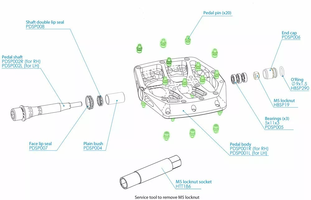 Las clavijas de recambio para los pedales de plataforma F20 de Hope ofrecen un agarre fiable, son extremadamente duraderas y fáciles de colocar.