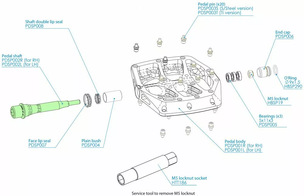 - 1 x eje de pedal Hope para pedales de plataforma F20