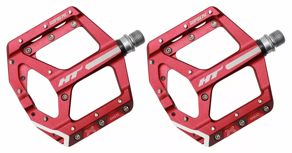 No importa las condiciones extremas de descenso, los pedales de plataforma HT ANS-10 Supreme ofrecen la confianza necesaria para controlar cualquier cosa. La plataforma de 16,6 mm de grosor ofrece un centro de gravedad más bajo y el exclusivo cojinete patentado permite girar fácilmente. Las 10 clavijas por lado proporcionan un alto nivel de agarre entre los pedales y las zapatillas.