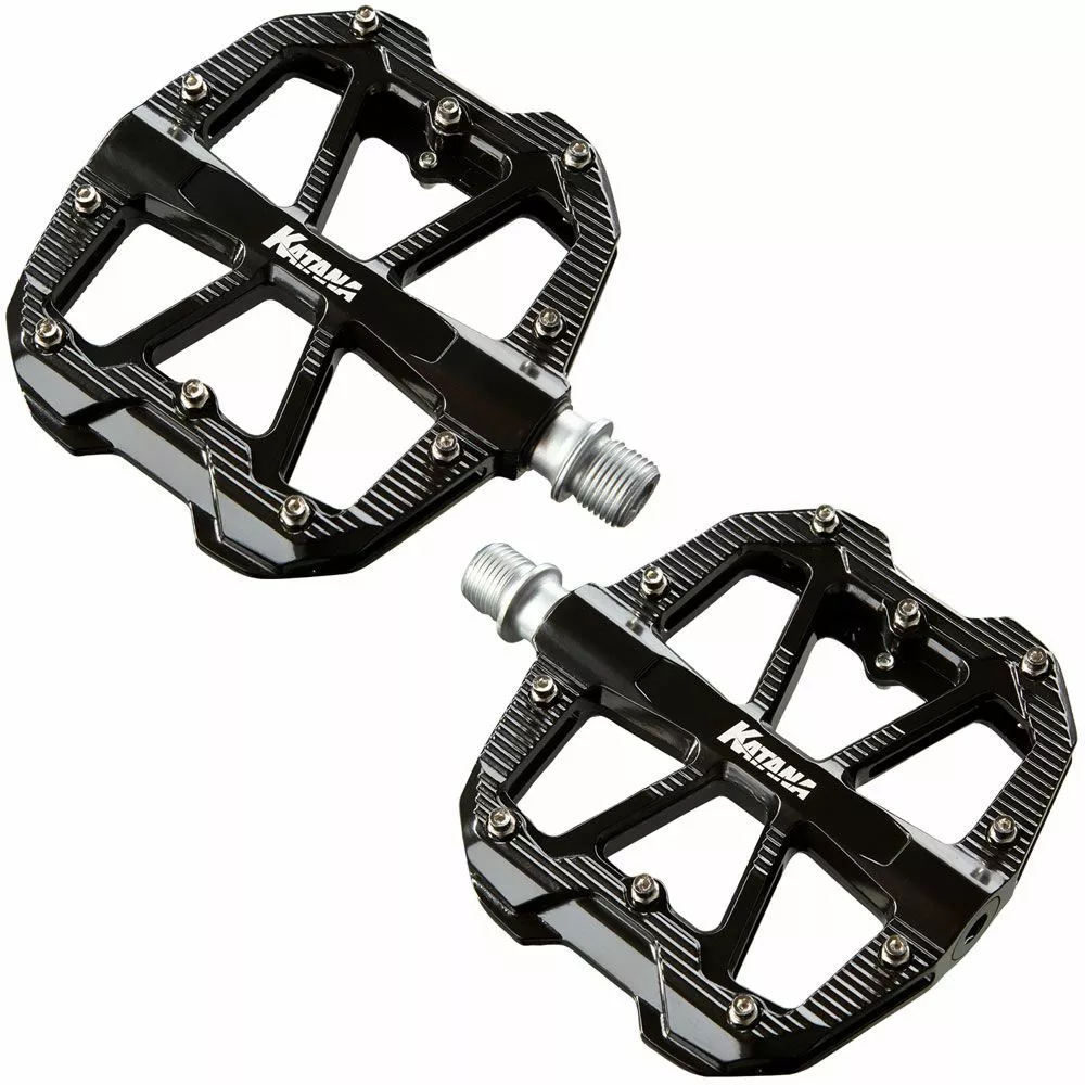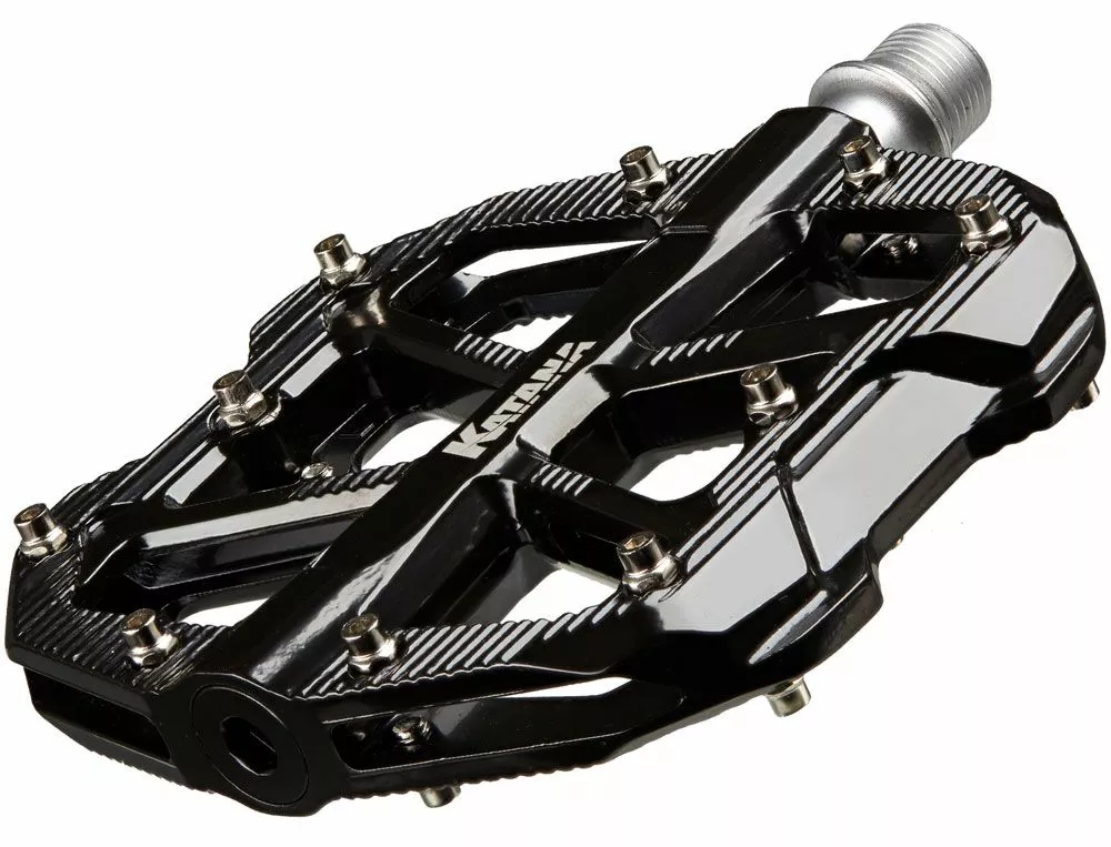 Los pedales planos Katana Blade constan de un robusto cuerpo de aluminio y están equipados con diez clavijas Evo para conseguir el agarre necesario en todos los caminos. El cuerpo del pedal de aluminio y los ejes fresados con CNC, en combinación con los rodamientos de bolas de alta calidad, garantizan una larga vida útil en todos los ámbitos de uso, incluso en las condiciones más duras. Blade es sinónimo de plano, robusto y rápido