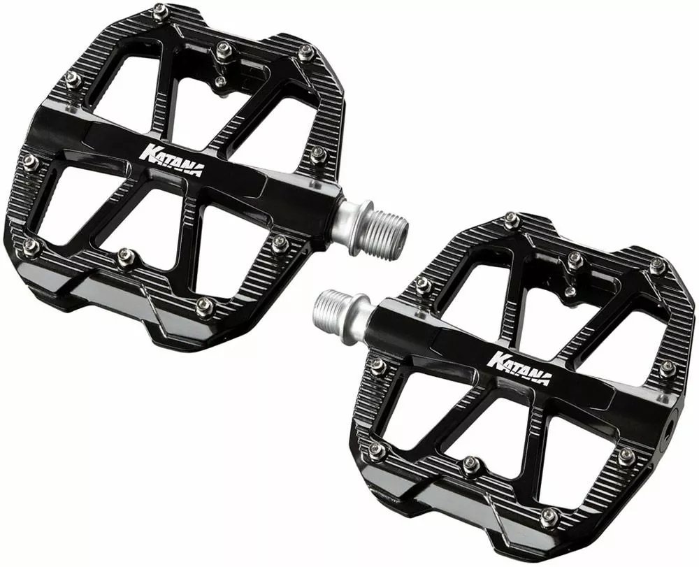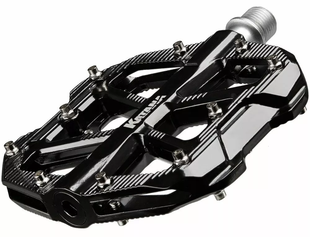 Los pedales planos Katana Blade están fabricados con un robusto cuerpo de magnesio y están equipados con diez clavijas Evo para conseguir el agarre necesario en todos los caminos. El cuerpo del pedal de magnesio y los ejes fresados con CNC, en combinación con los rodamientos de bolas de alta calidad, garantizan una larga vida útil en todos los ámbitos de uso, incluso en las condiciones más duras. Blade es sinónimo de plano, robusto y rápido