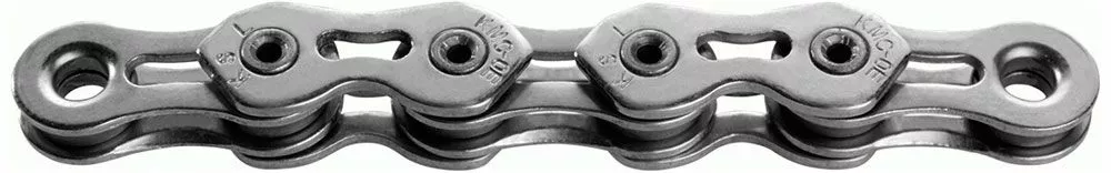 La cadena K1SL Narrow Singlespeed de KMC con superficie niquelada para BMX, sistema de engranajes de buje y otros sistemas de una sola velocidad que requieren una transmisión directa de la potencia.
