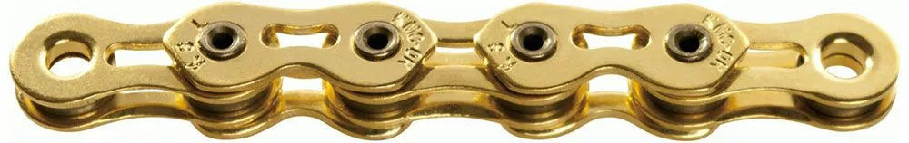 La cadena K1SL Narrow Singlespeed de KMC con superficie revestida de oro de nitruro de titanio para BMX, sistema de engranajes de buje y otros sistemas de una sola velocidad que requieren una transmisión de potencia directa.