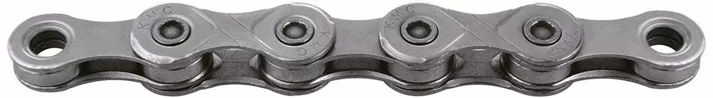 La cadena de 10 velocidades X1 EPT de KMC, extremadamente duradera, sin dependencia del sentido de la marcha y con revestimiento superficial EcoProTeQ para sistemas de cambio de 10 velocidades.