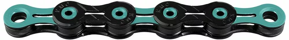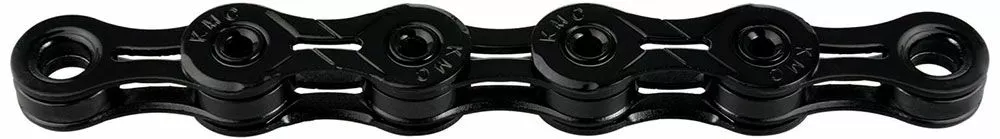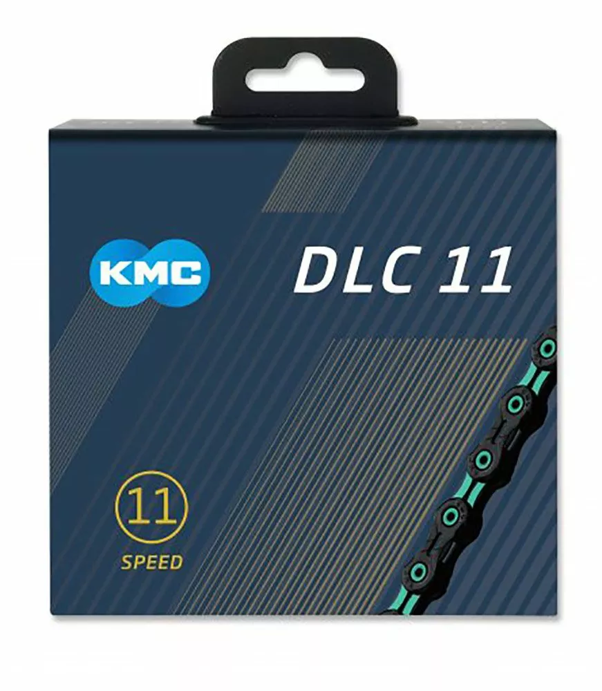La cadena súper ligera X11 DLC de 11 velocidades de KMC sin dependencia del sentido de la marcha y con un revestimiento superficial Diamond Like Coating para sistemas de cambio de 11 velocidades.