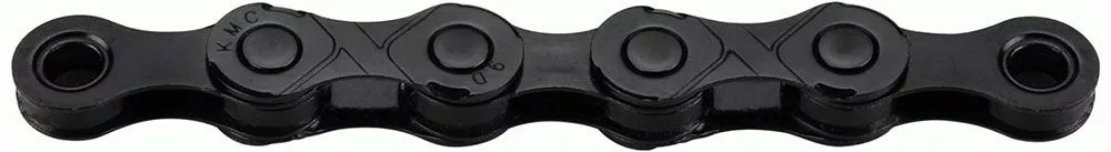 La cadena súper ligera X11 DLC de 12 velocidades de KMC sin dependencia del sentido de la marcha y con un revestimiento superficial Diamond Like Coating para sistemas de cambio de 12 velocidades.