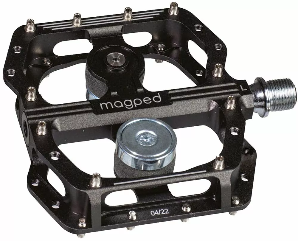 - Peso: El pedal magped es un pedal plano moderno y de alta calidad fabricado con aluminio ligero fresado por CNC y un eje de CrMo. Todos los magpedales no son más pesados que los pedales comparables de gama alta, a pesar del sistema de imanes adicional.