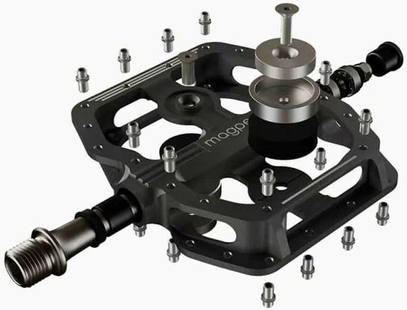 - Tecnología: El pedal magped está equipado con 3 rodamientos industriales sellados de alta calidad. Las clavijas del pedal se pueden cambiar si es necesario. La altura del imán de neodimio de alto rendimiento es ajustable mediante una suspensión especial de polímero integrada.