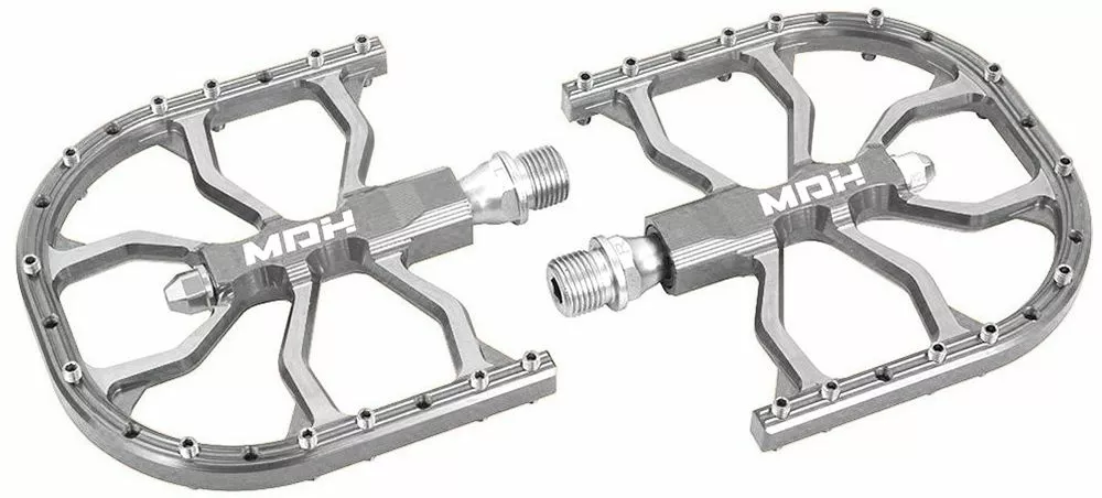 Los pedales de la plataforma Spyder están fabricados por CNC a partir de una sola pieza de aluminio, para conseguir la mejor estabilidad, junto con un diseño de filigrana. Cada pedal está equipado con 24 clavijas reemplazables y el fuerte eje Cro-Mo está diseñado para las cargas más duras en el uso de la MTB.
