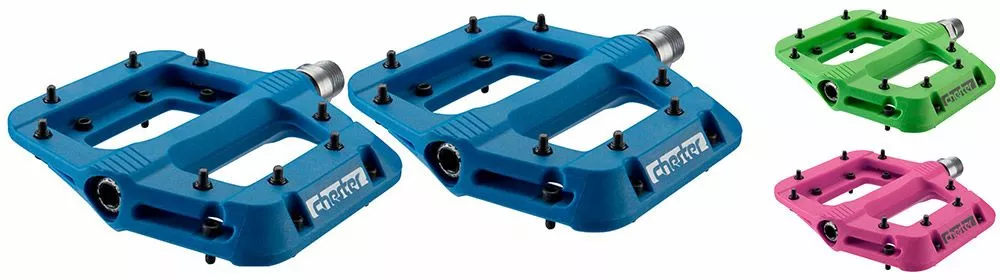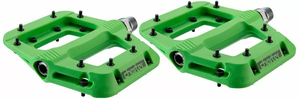 El Chester favorito de Race Face ha sido dotado de unos nuevos perfiles de tracción en su delgada y ligera plataforma cóncava para dar un soporte extra a los 8 pines de tracción hexagonales intercambiables por lado. El robusto cuerpo del pedal de nylon compuesto gira en torno a un eje Cro-Mo totalmente sellado con un sistema de cojinetes y casquillos 100% mantenibles.
