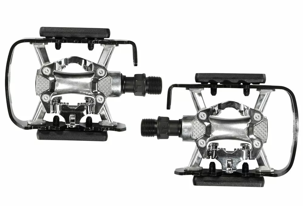 Estos pedales de plataforma/click Radon son compatibles con SPD y están montados sobre un eje de Cr-Mo.