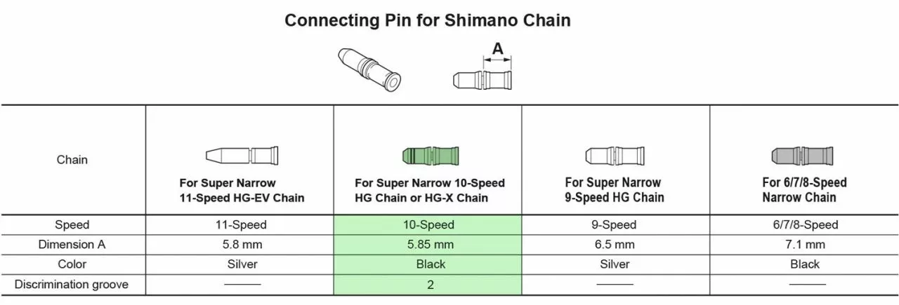 Pasador de cadena con doble anillo para cadenas Shimano de 10 velocidades para un cierre seguro.
