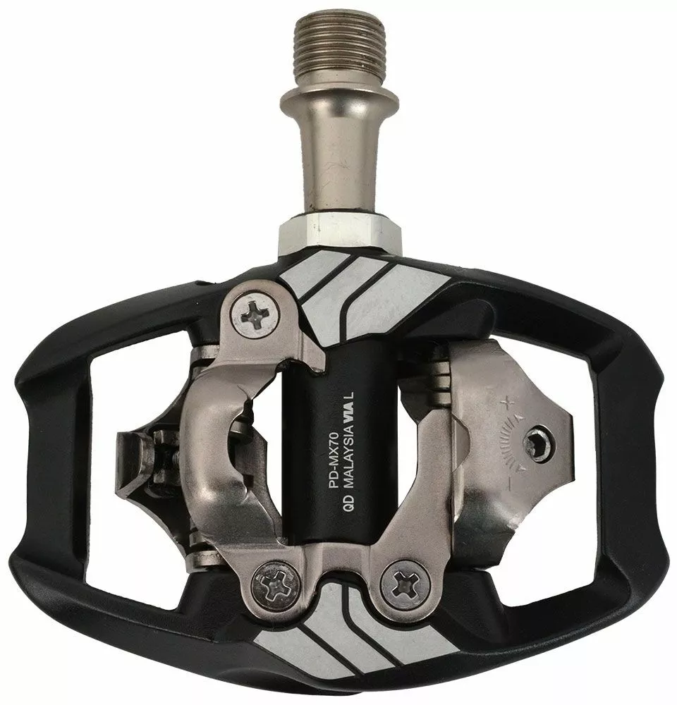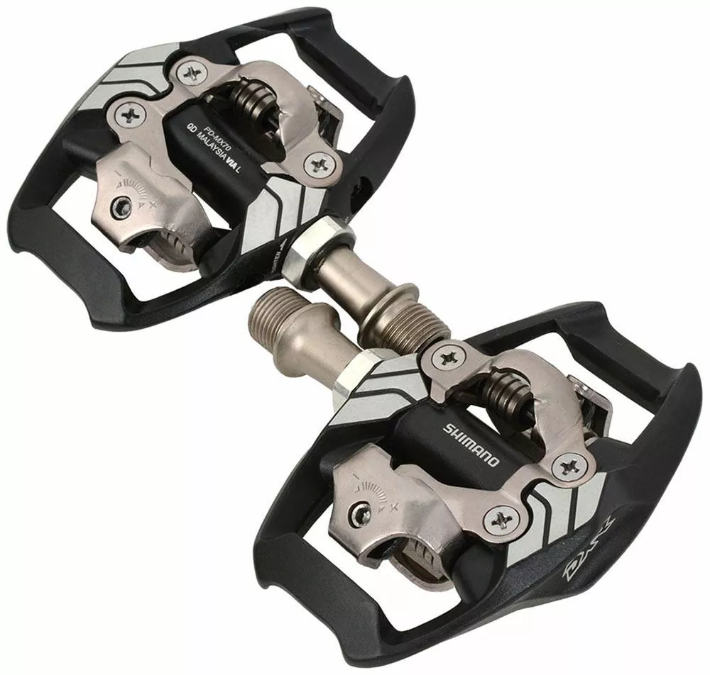 Los pedales DXR PD-MX70 de Shimano son compatibles con el sistema SPD en ambos lados y ofrecen un agarre perfecto incluso durante las maniobras extremas. Los pedales armonizan perfectamente con los demás componentes de la serie DXR e impresionan con la habitual calidad de Shimano.