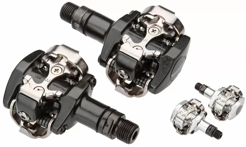 Pedal Shimano PD-M505 para deportes de rendimiento, súper compacto y ligero con fijación SPD en ambos lados.