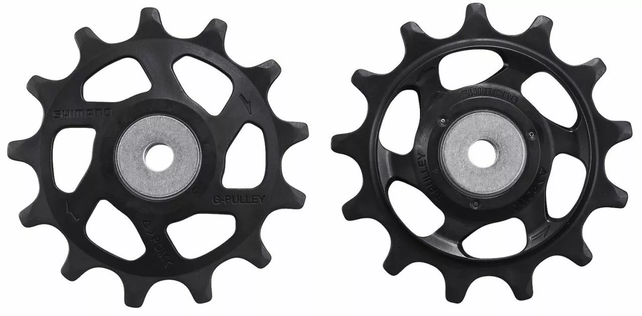 Juego de poleas Shimano Advanced MTB para grupo DEORE XT M8100 de 12 velocidades. Los rodamientos de precisión sellados de ambos rodillos garantizan un accionamiento suave y de baja fricción.