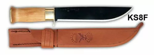 Strømeng SAMEKNIV 8″» M/FINGERVERNSpesielt utviklet til Forsvarets behov for universalredskap for sine jegertropper. Med denne kniven vant Knivsmed Strømeng en anbudskonkurranse med mange store knivprodusenter i Europa. …- Bladlengde 21 cm.- Totalt 33 cm.- Vekt 360