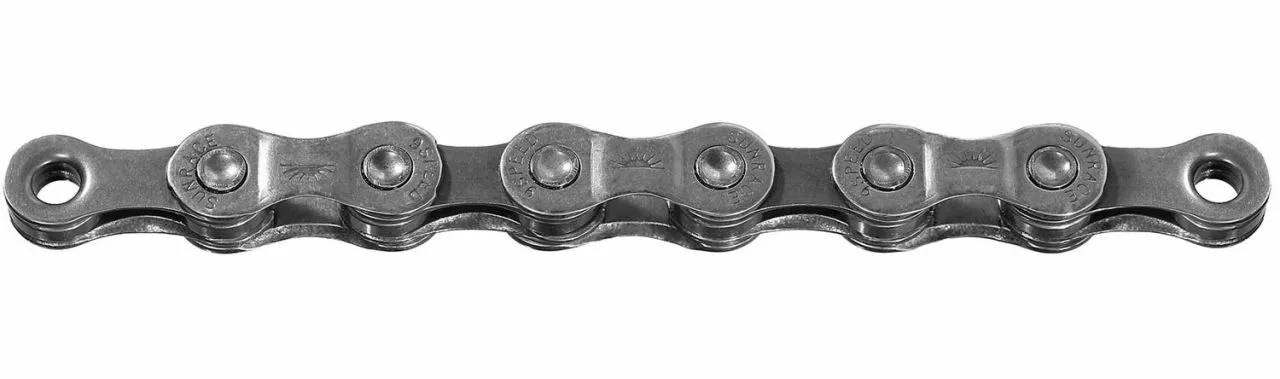 La duradera cadena SunRace CNM94 de 9 velocidades con 116 eslabones para sistemas de cambio de 9 velocidades Sram/Shimano.