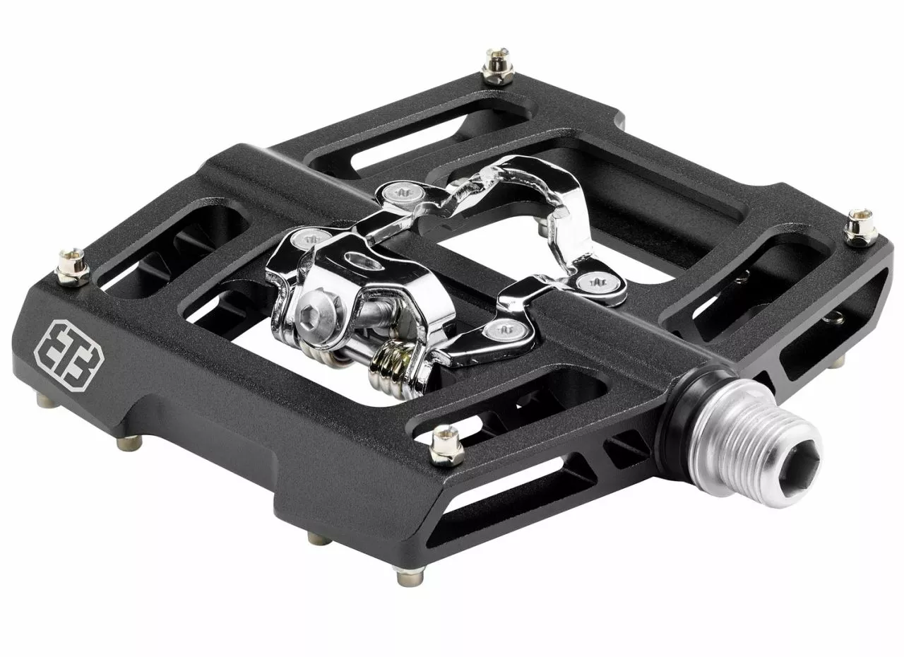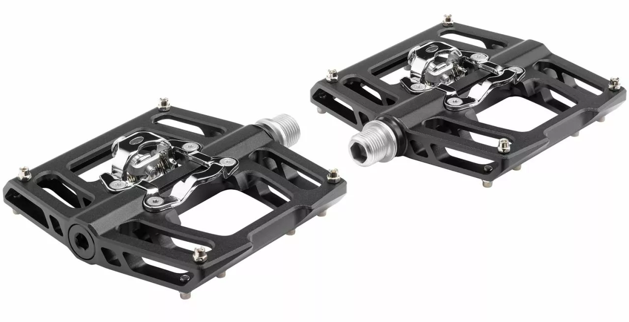 Los pedales planos de alta gama TRIPLE EIGHT, mecanizados por CNC, con sistema de clic compatible con SPD de una sola cara, pasadores antideslizantes reemplazables y rodamientos industriales.