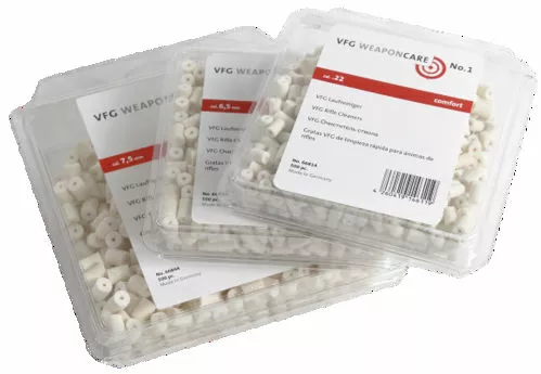 VFG pussepropper 6,5 pose á 500 stkPussepropper fra VFG i høy Tysk kvalitet. Pusseproppene festes på VFG adapteret som monteres på pussestokken. Felles for alle våpensystemer er at rengjøring, bevaring og avfetting er utført med ull. VFG sitt høy kvalitets-ull er laget av naturlig saueull med cellulose-ull og i passende diameter for å matche hvert kaliber. De individuelle fibrene er uten tilsetning av et bindemiddel av noe slag.Gir enkel innvendig puss av løpetHøy kvalitetOmfattende utvalg til diverse kalibreRent naturprodukt – ingen kjemikalierStabil form – samtidig meget fleksibelMeget absorberende og kan felle store og små partikler av skitt