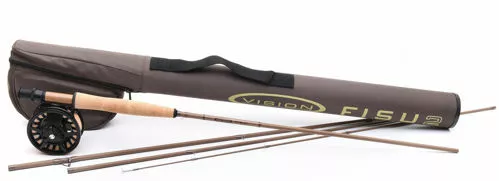 Vision FISU² outfit 9´ #6Denne stang komboen er helt ny og består av medium/fast action stenger. Setttene er ferdig rigget for fiske. Settene kommer med Wf line, backing og fortom. Snelle med Disc brems som gir en jevn og kraftig brems. Stengene er 4-delte og kommer levert i en Cordura bag med plass til snella. Dette setter er både egnet for vanlig ørretfiske i ferskvann og sjøørretfiske i sjøen. Medium/fast action four piece rod Modern aluminium large arbour reel with disc brake Easy casting floating fly line Includes backing and a leader All pre-spooled and ready for action