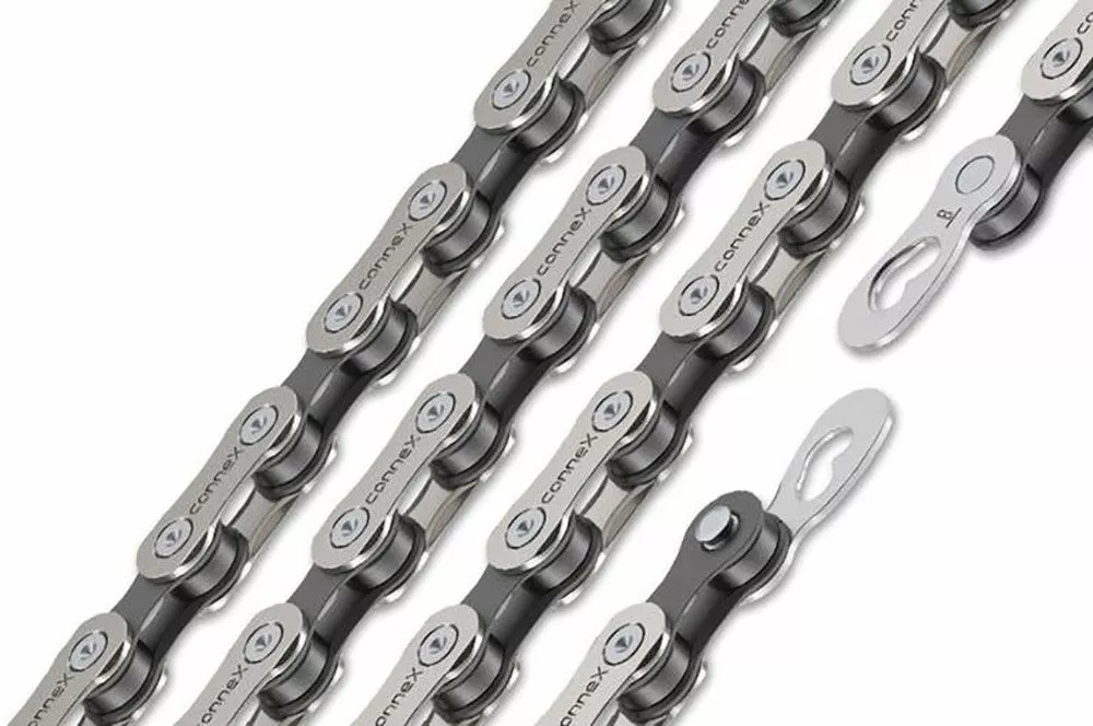La cadena Connex 804 de Wippermann estĂĄ equipada con placas exteriores niqueladas de alta calidad y excelentes propiedades de desplazamiento. El probado contorno de la placa del eslabĂłn exterior garantiza un cambio silencioso y preciso, mientras que el remachado radial ofrece la mĂĄxima resistencia y seguridad.