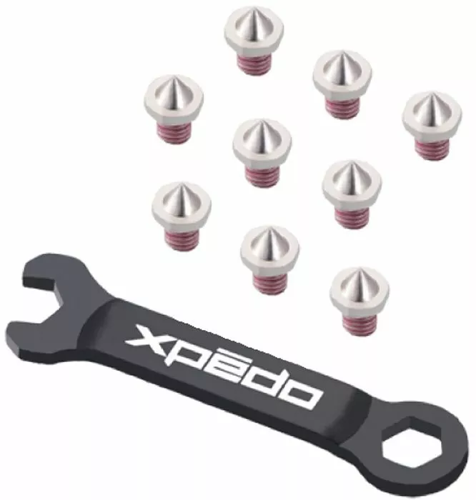Las clavijas de recambio Xpedo Spike son una gran manera de mejorar el agarre de sus pedales. Estos duraderos pasadores de acero proporcionan una calidad de agarre en cualquier zapato. La llave especial para pasadores hace que la sustitución sea un juego de niños.