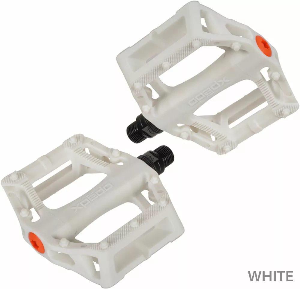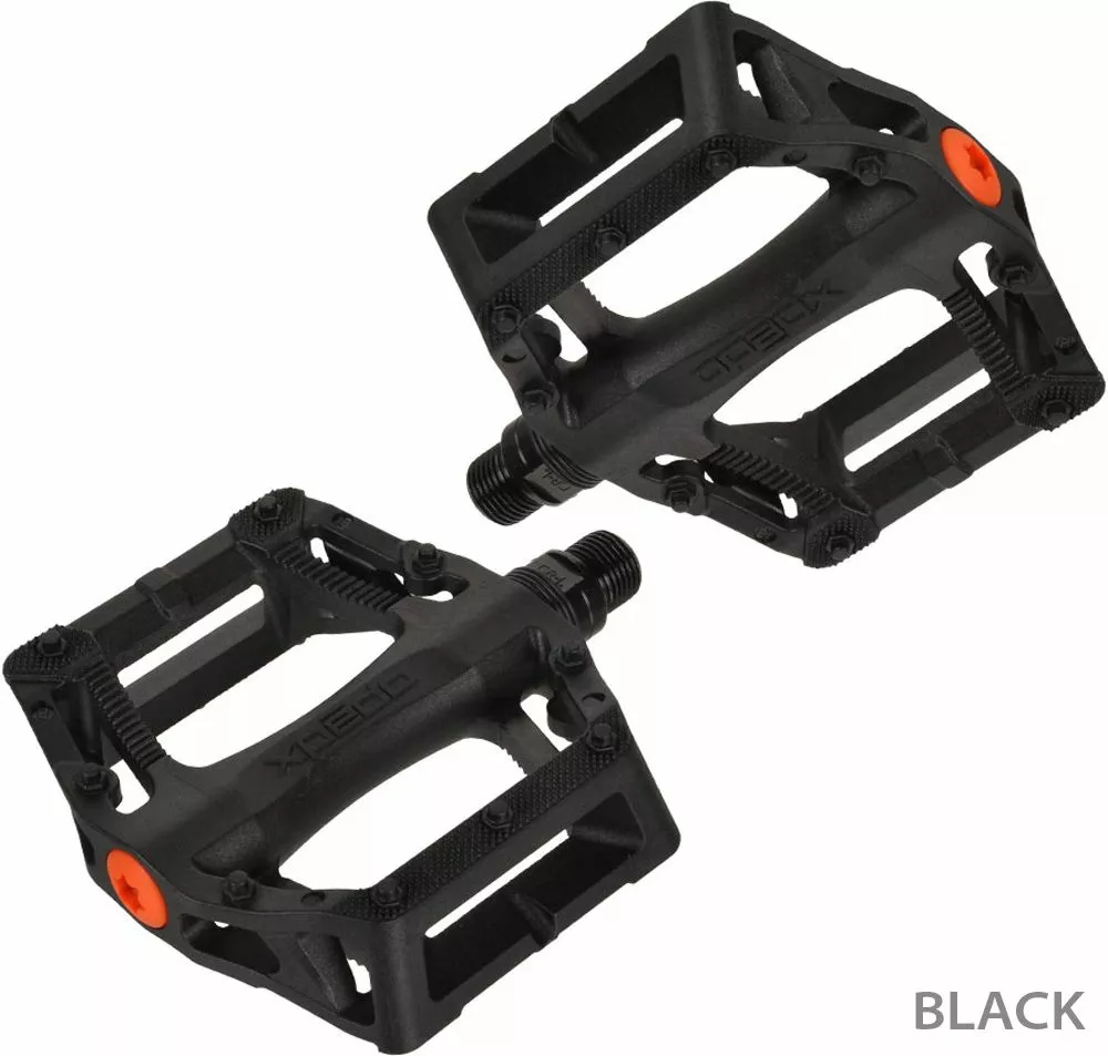 El pedal de plataforma Juvee de Xpedo no es demasiado pesado gracias a la inyección de nylon, pero también es especialmente robusto gracias al eje de acero CroMo. las 36 clavijas proporcionan una tracción superior, máximo control y eficiencia de pedaleo. El pedal ideal para trucos exigentes en el BMX park.