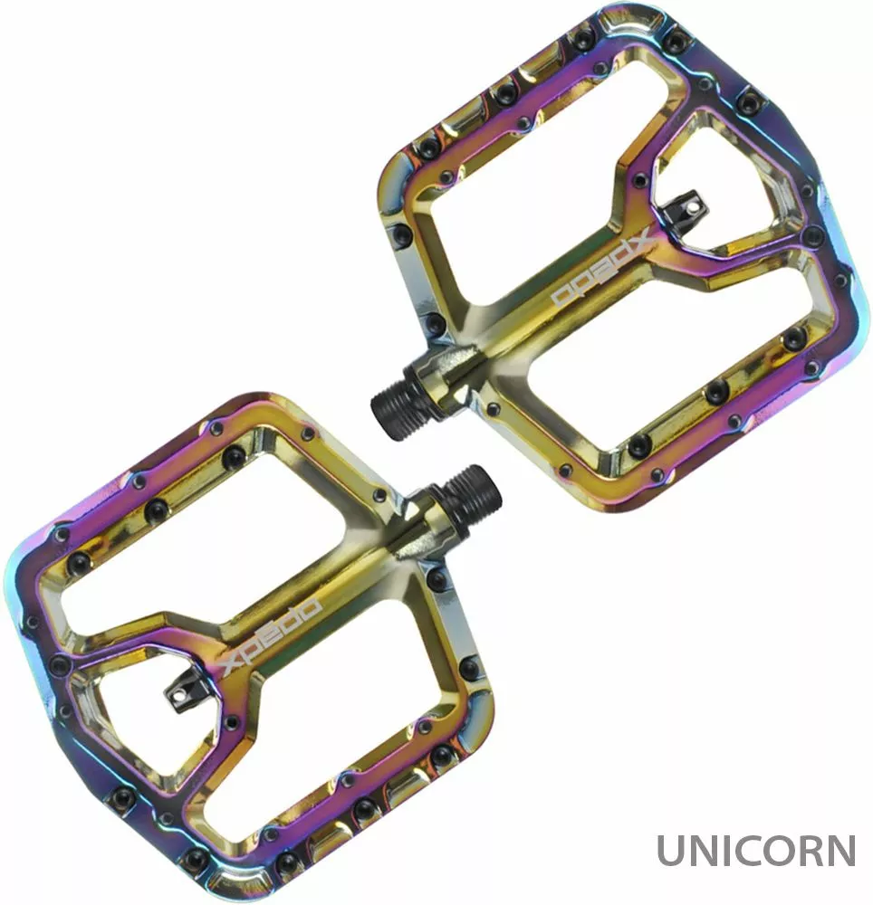 El Trident es un pedal súper plano con una plataforma extra grande que ha sido especialmente desarrollado para all-mountain, downhill y dirt jump. El cuerpo de aluminio 6061 forjado tiene 114 mm de ancho y 10 mm de grosor y ofrece mucho espacio libre con sus bordes biselados. 48 clavijas proporcionan una tracción superior, máximo control y eficiencia de pedaleo.